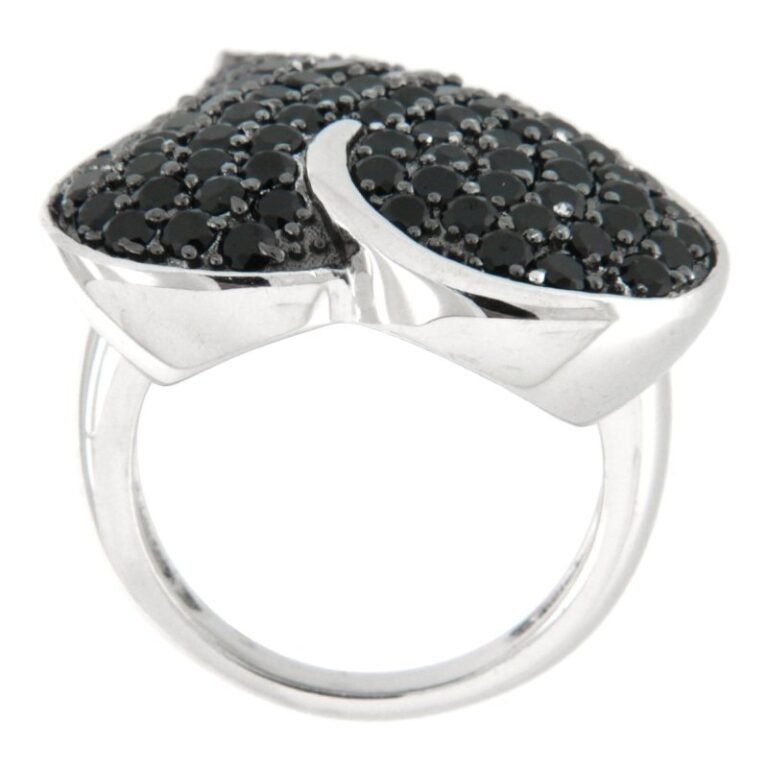 Pearlz Ocean Ladies Heart Black Spinel Ring – 925 Sterling Silver Rhodium Plated – Designer Cocktail Ring 6.14g – Bold & Elegant Natural Gemstone Jewelry