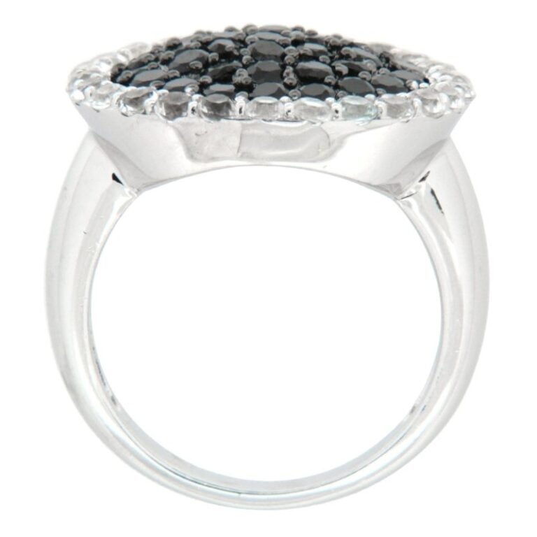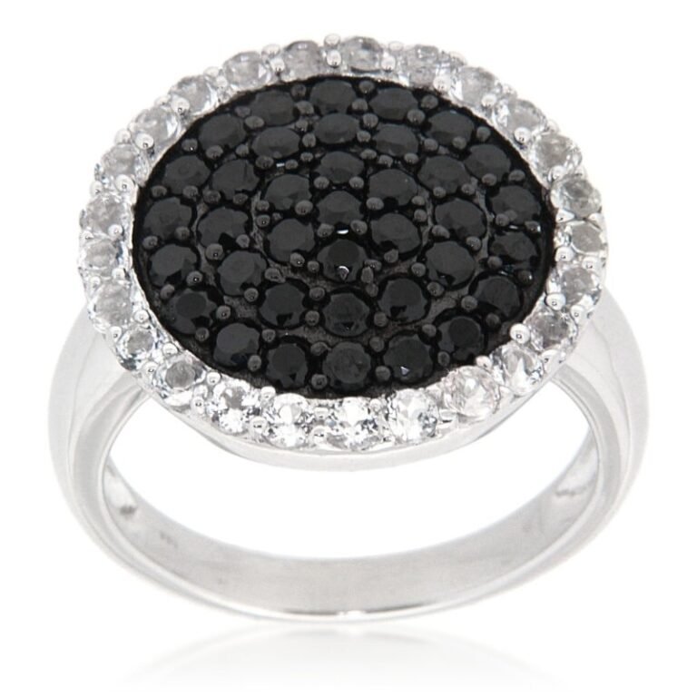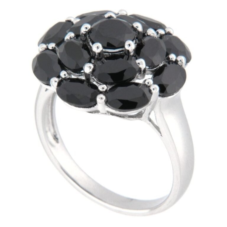 Pearlz Ocean Ladies Black Spinel Cocktail Ring – 925 Sterling Silver Rhodium Plated – Bold 7.11g Statement Jewelry – Radiant and Refined Design