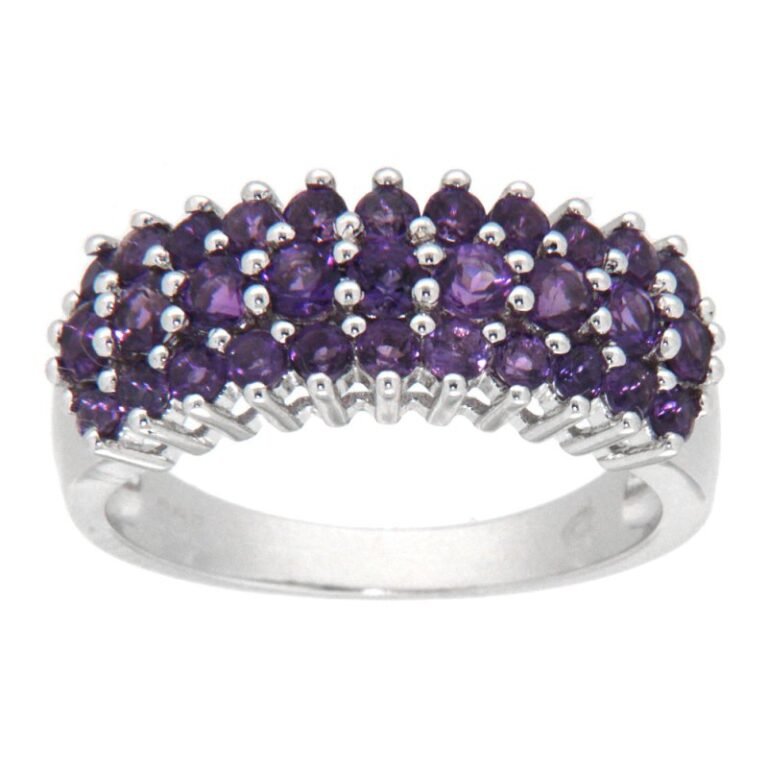 Pearlz Ocean Ladies Natural Amethyst Ring – Elegant Triple Row Design – 925 Sterling Silver Lavender Stone Band – Feminine Statement Jewelry