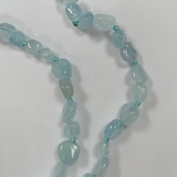 Oval Aquamarine Knotted Necklace by Pearlz Gallery. Natural oval nuggets aquamarine with classic knotted endless design for a truly stunning, serene look. Petite yet vivid aquamarine hues add elegance to every outfit and occasion.