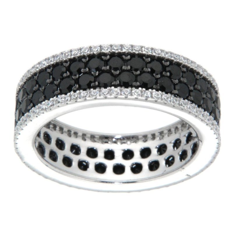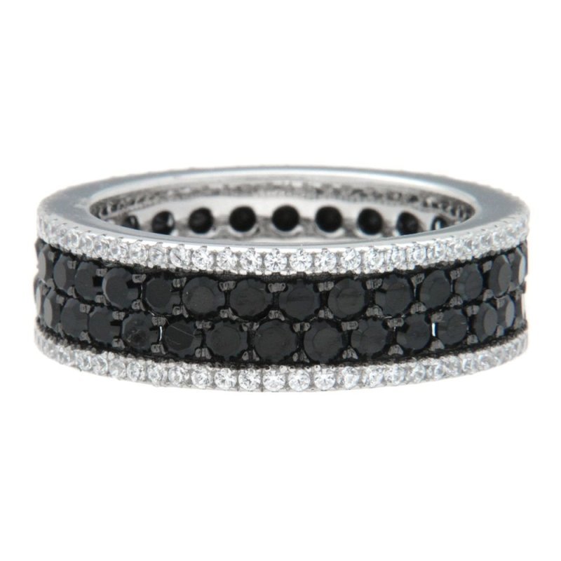 Pearlz Ocean White & Black Cubic Zirconia Eternity Band Ring – 925 Sterling Silver