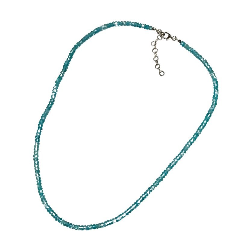 Pearlz Ocean Blue Apatite Necklace 18+2 inch, Faceted Rondelle Natural Gemstone Jewelry for Ladies, 925 Sterling Silver, Chakra Healing Stylish Look