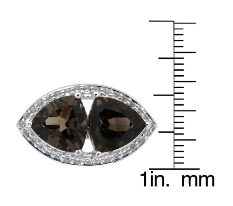 This exquisite Pearlz Ocean ring features two trillion-cut smoky quartz stones elegantly encircled by 32 pave-set white topaz accents. Crafted in durable 925 sterling silver with a high polish and rhodium plating, this ring shines brilliantly and complements any occasion. Perfect for parties, festivals, and special gatherings, this piece also makes an ideal gift for the special women in your life.