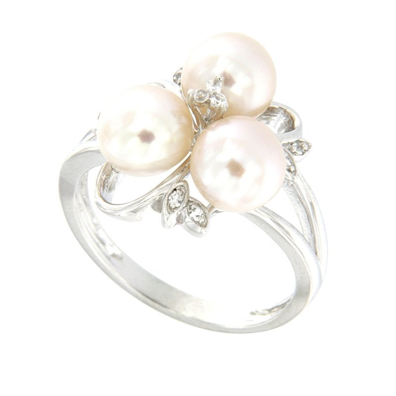 White Fresh Water Pearls & White Topaz Ring by Pearlz Ocean