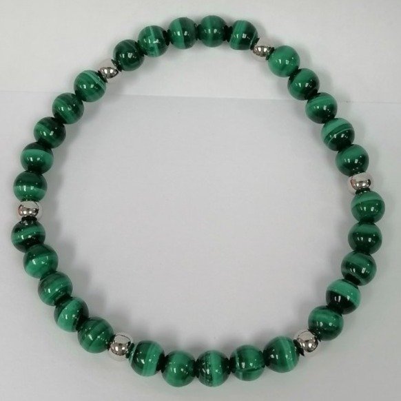 Pearlz Ocean Natural Malachite Bracelet 7.5-8 inch Fancy Round Beads, Ladies 925 Sterling Silver Jewelry, Confidence & Style Booster
