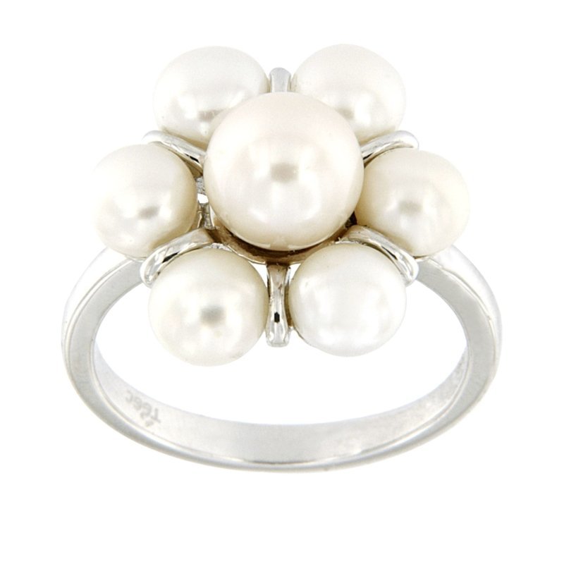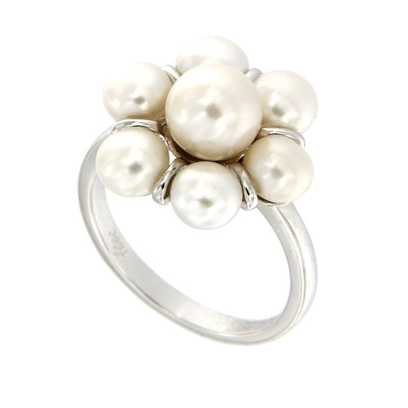 Pearlz Ocean White Freshwater Pearl Flower Ring – Elegant Sterling Silver Jewelry