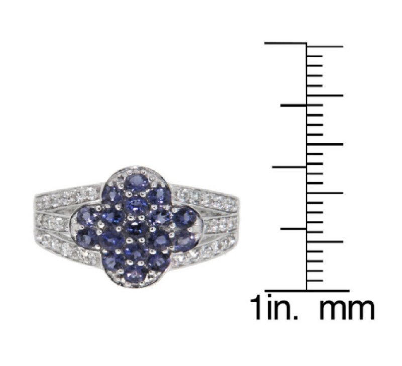 Pearlz Ocean Women’s Quatrefoil Cocktail Ring – Iolite & White Topaz Gemstones – 925 Sterling Silver, Elegant Statement Jewelry